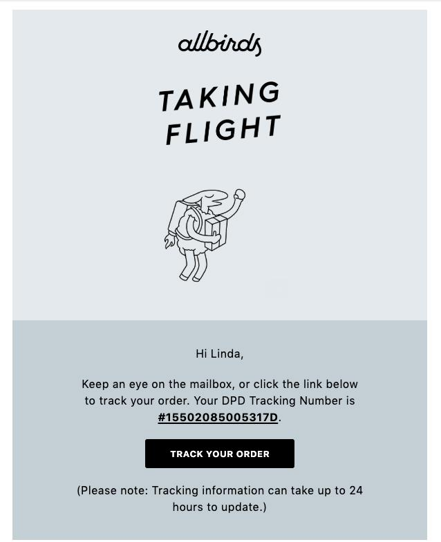 Allbirds 的绵羊动画形象深入人心,且邮件发送有连贯性,主要输出的信息点则为30天全额退款政策、可持续原材料等。配上一键购买的按钮,让邮件整体风格轻松简洁。